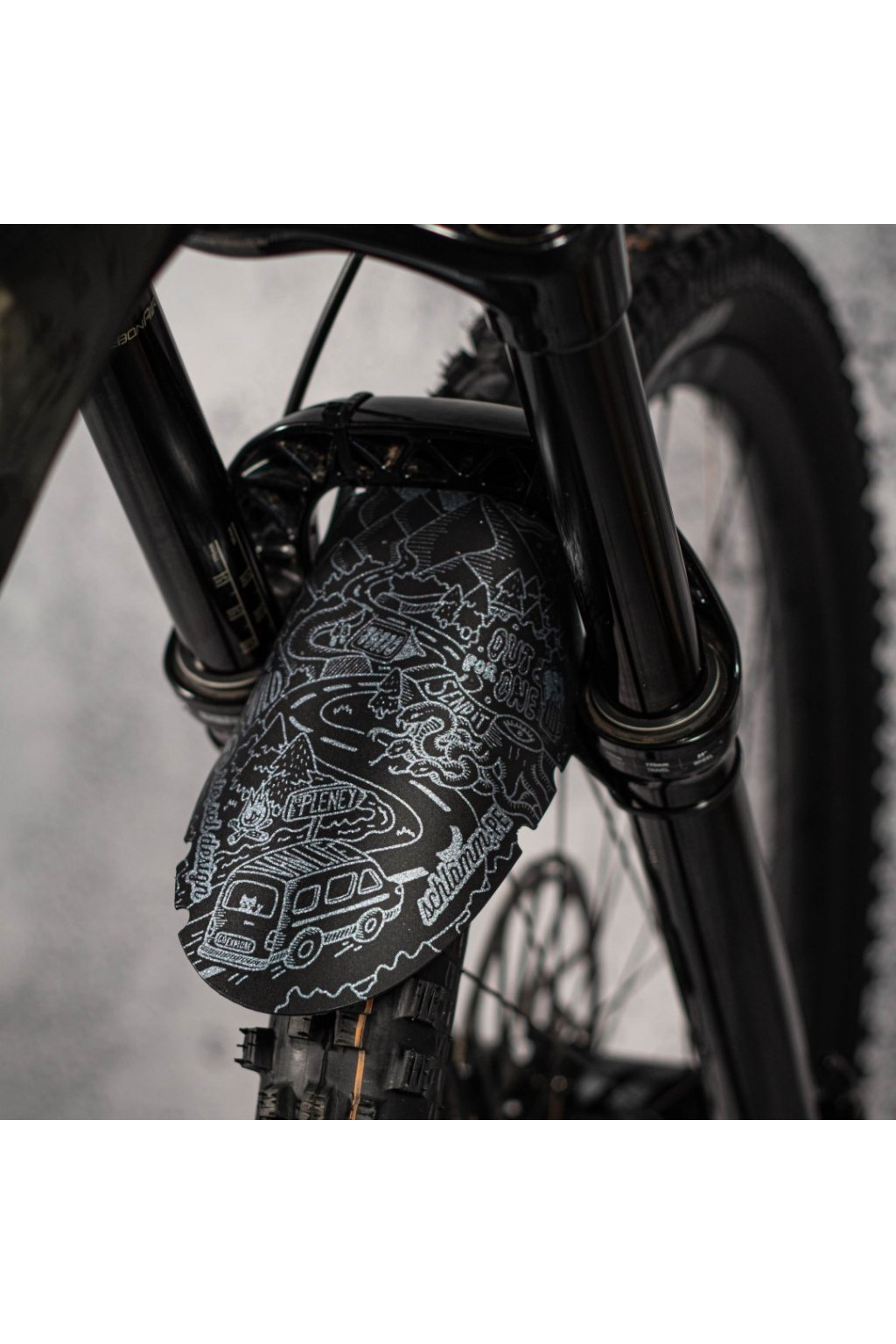 Jednoduchý a funkční blatníček na vidlici a zadní stavbu v cool designu Rie:sel. Upevnění pomocí stahovacích pásek, které jsou součástí balení. Odolný proti poškrábání.